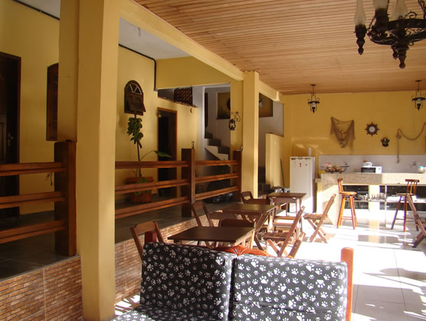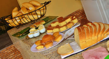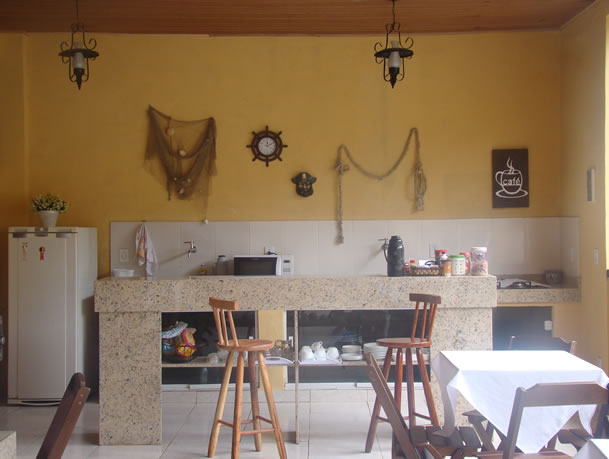 Nossas diárias incluem café da manhã, servido em um confortável e arejado salão. ( Bolos, Frutas frescas, Sucos Naturais, Pães, Café e Leite quentinho, Frios e mais.)